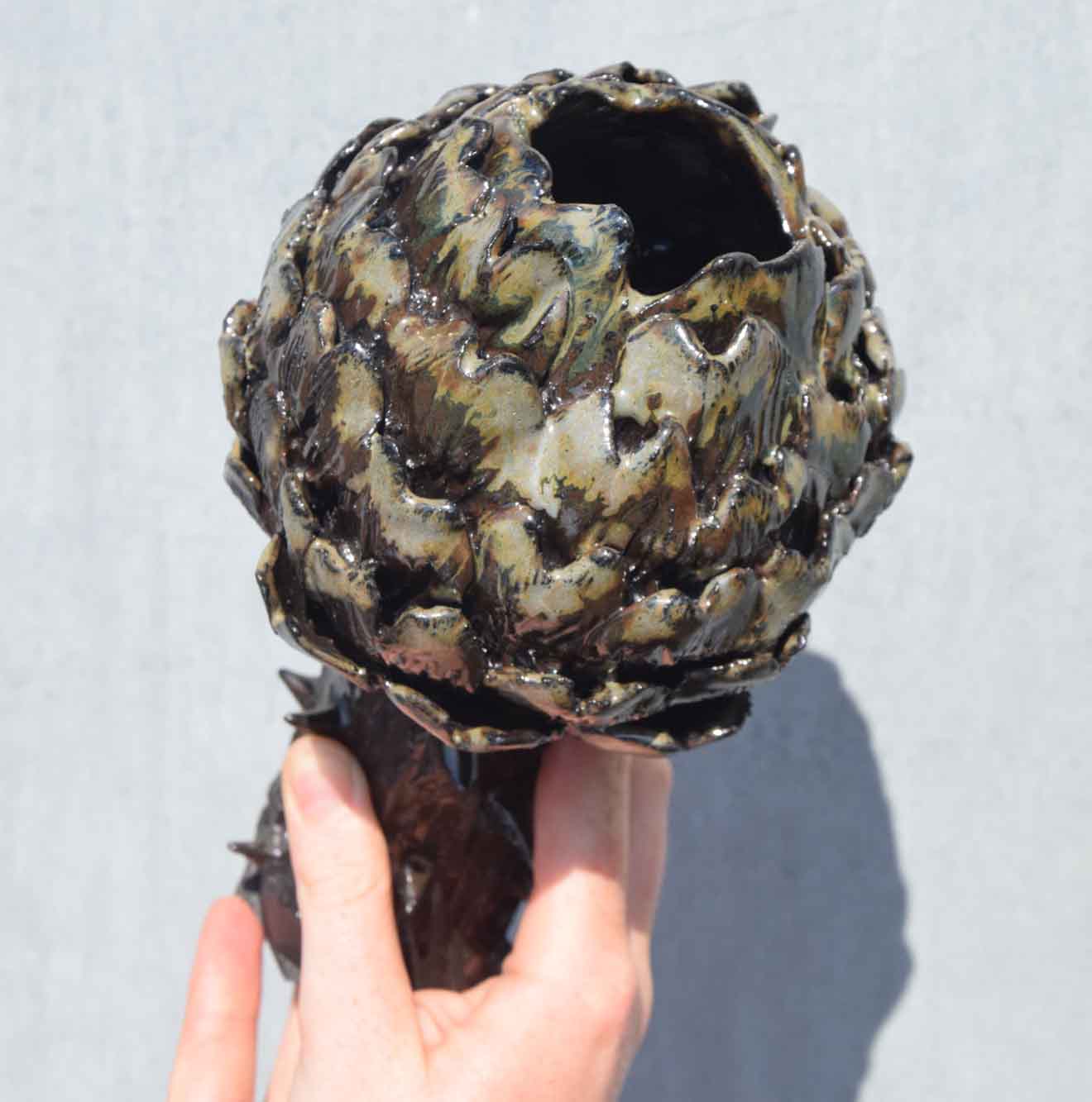 Ce choix de formes et de techniques utilisées me permet aussi de parler de sensibilité. “Avoir un coeur d’artichaut” sonne souvent de manière péjorative. J'ai choisi de sculpter les pétales comme une armure, et de rendre le cœur visible mais inaccessible.